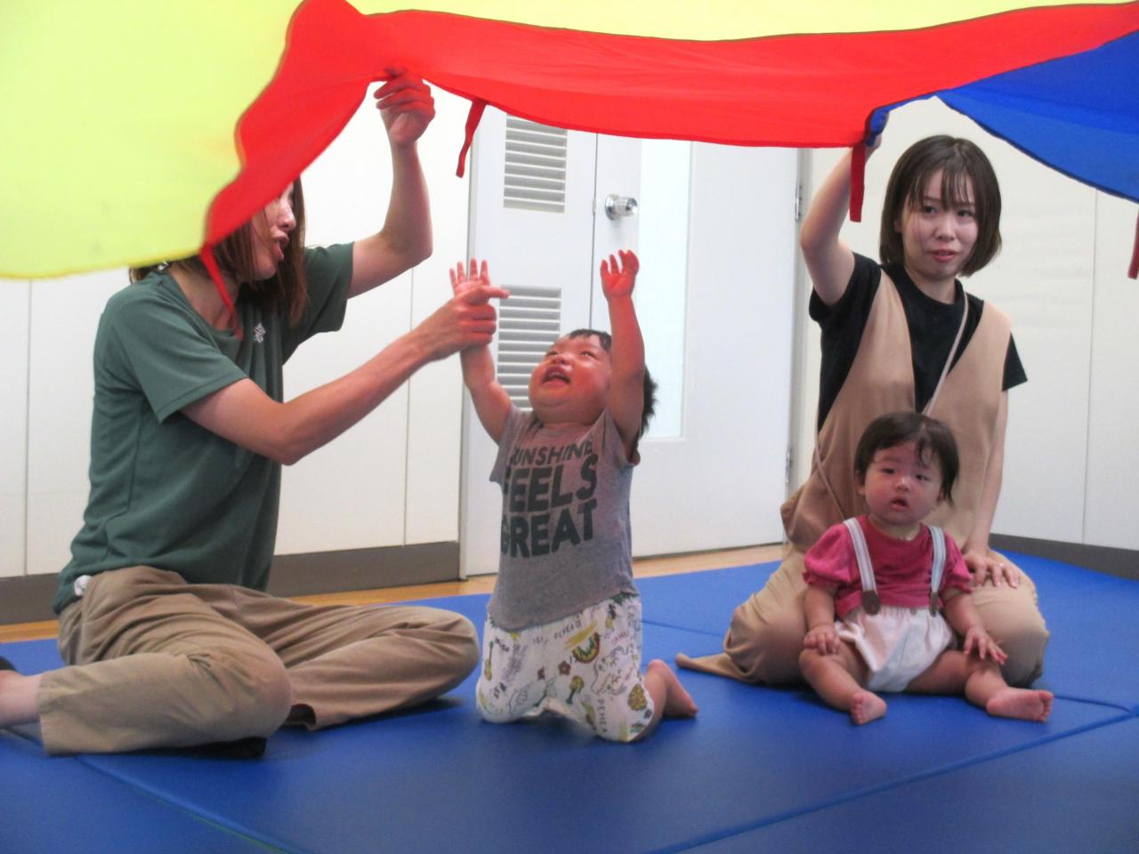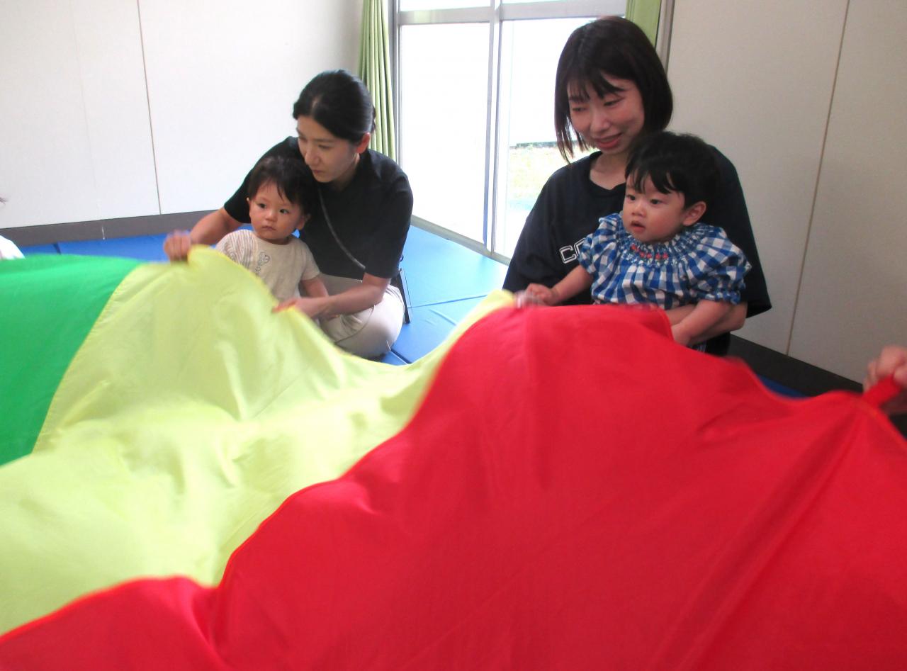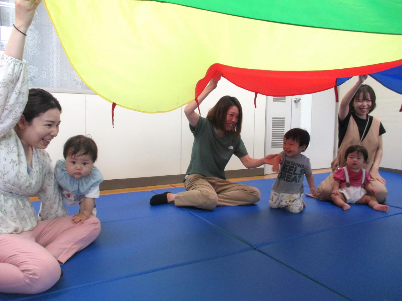 テントの様に広がるパラバルーンに目を丸くして喜んでくれました!