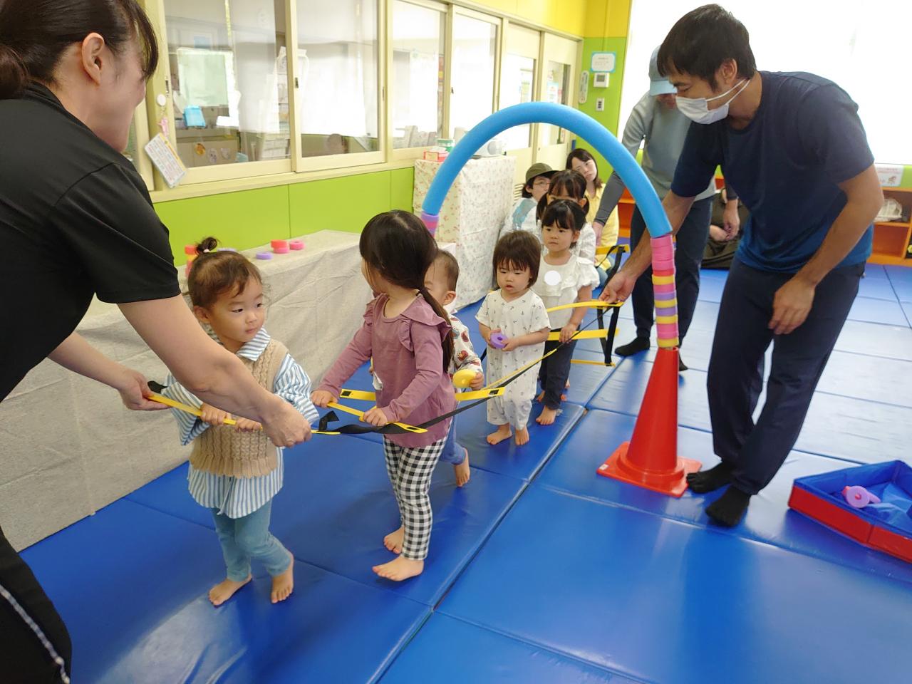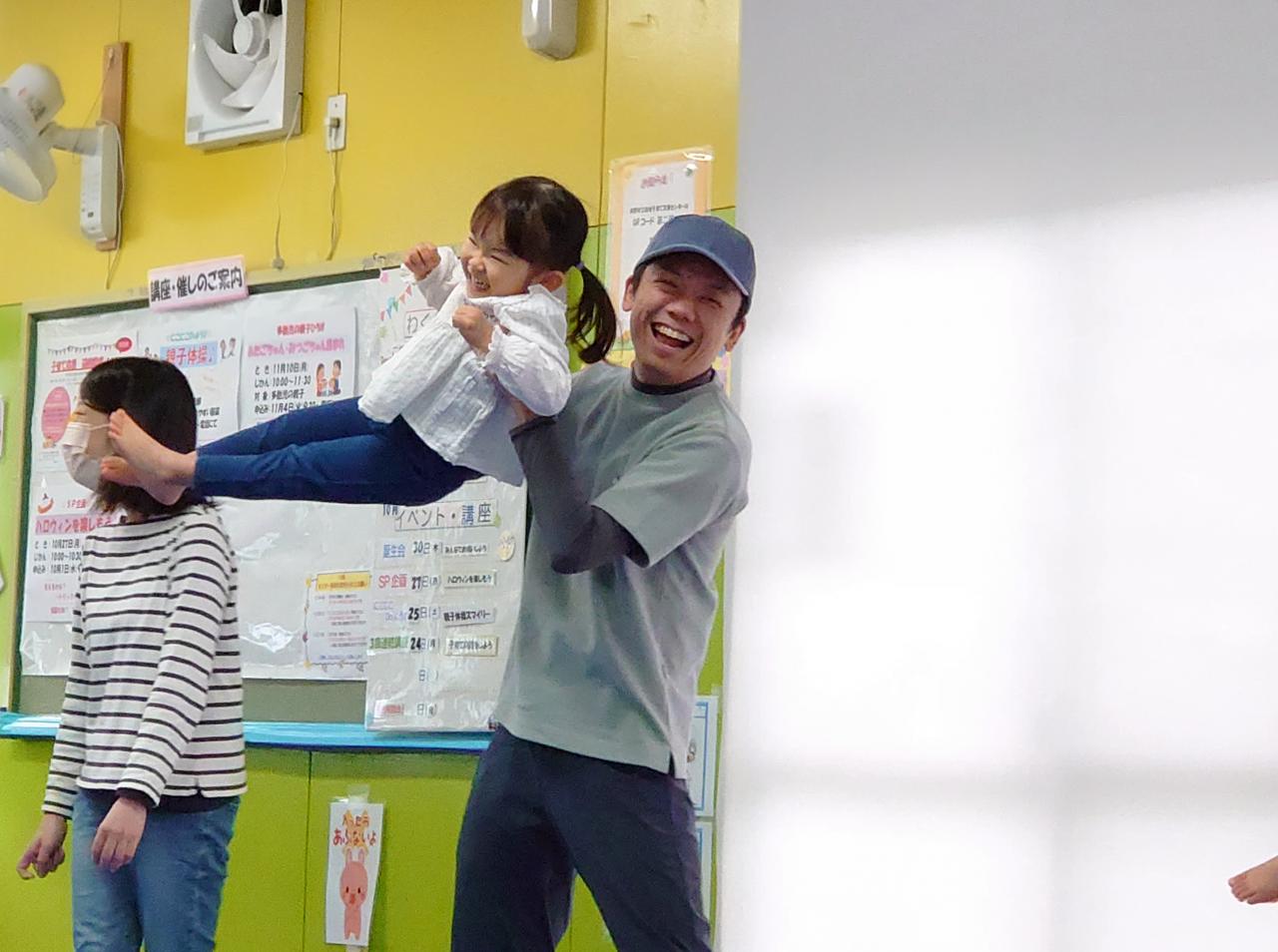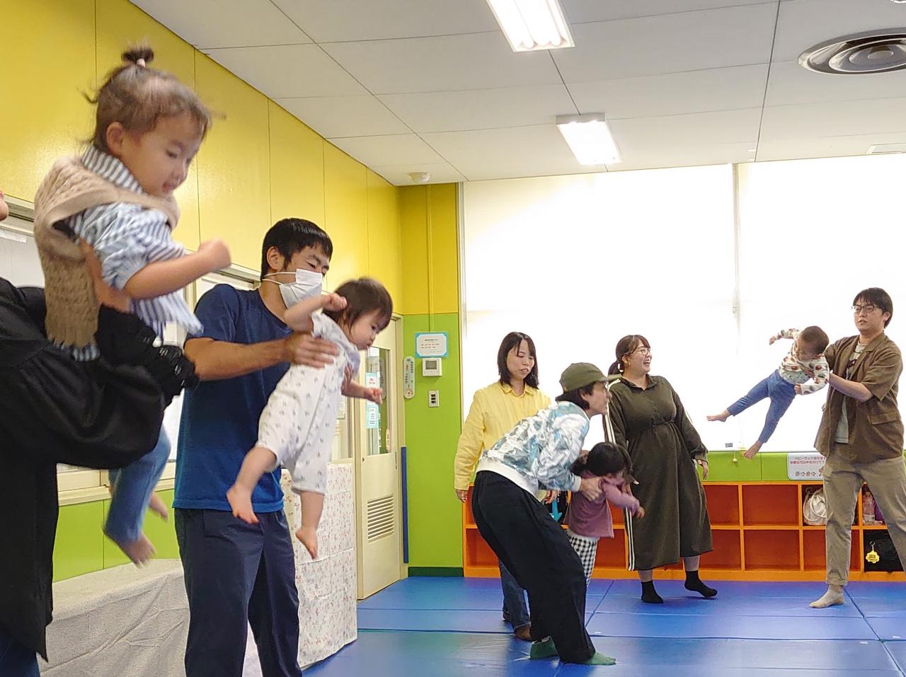 サンサン体操やハロウィンの曲で体を動かした後は、パパやママに体を持ち上げてブラブラしてもらって大喜び!(^^)!