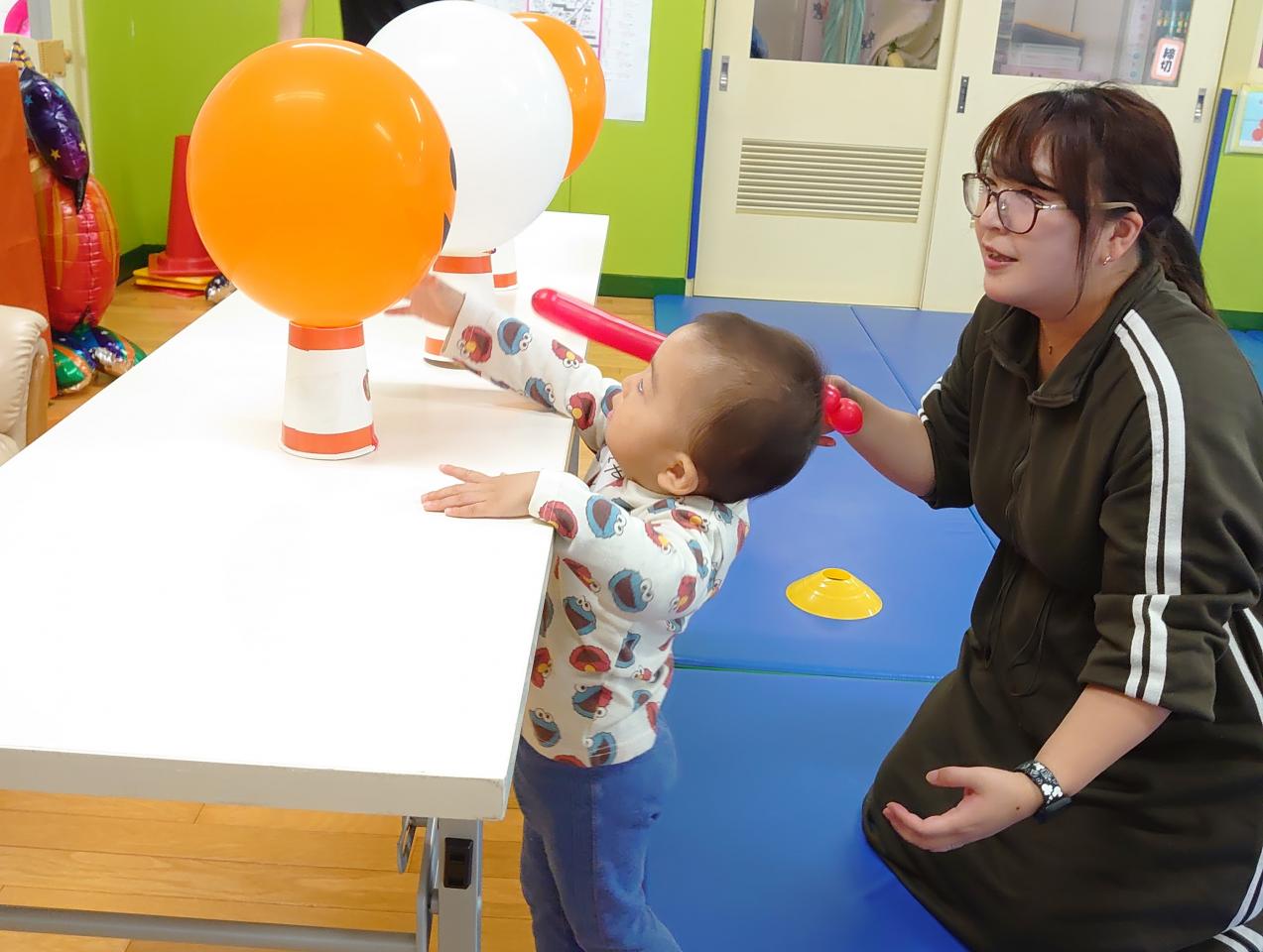 お化けの風船をやっつけたり、スポンジドーナツを棒に通したり...