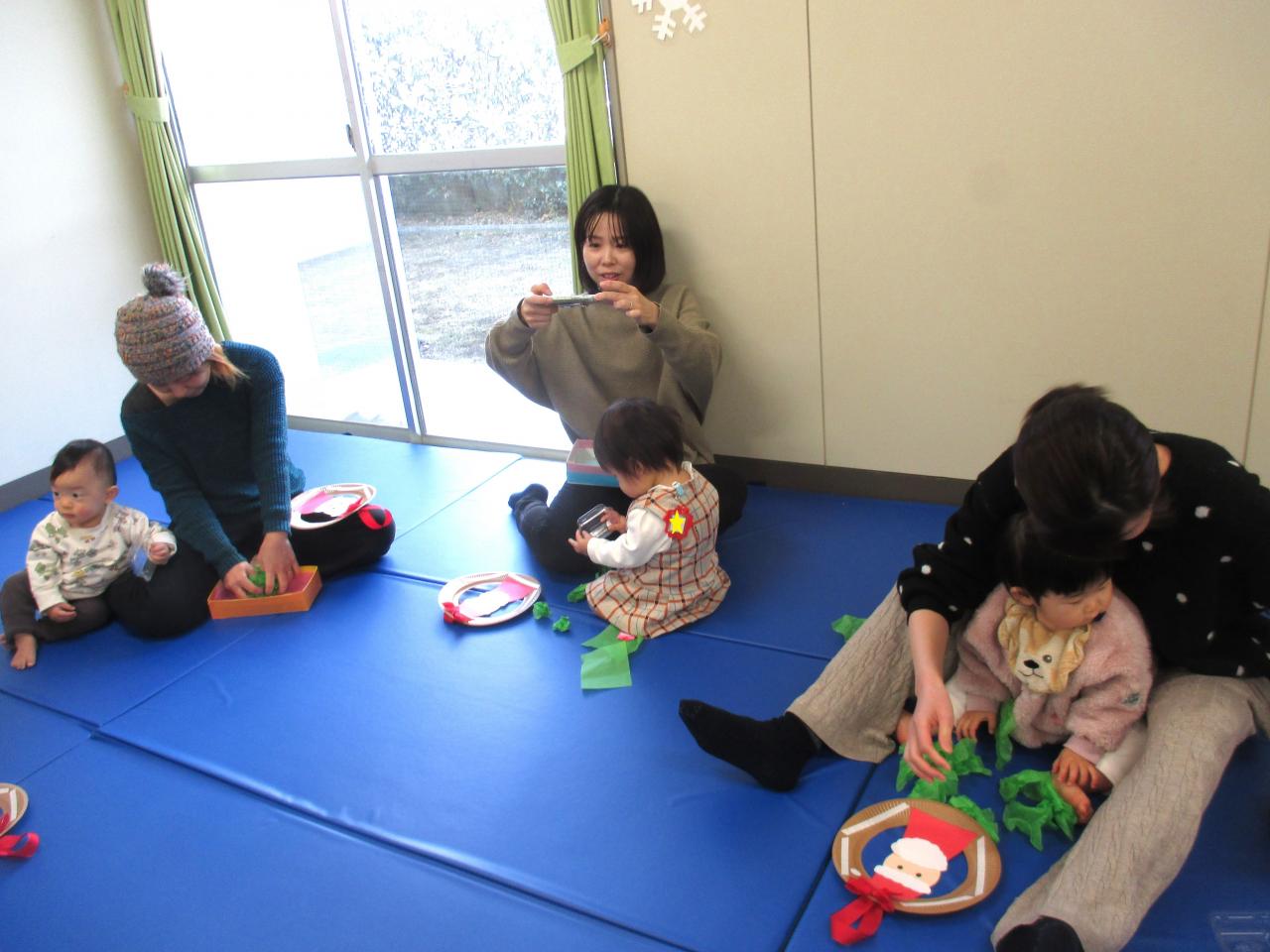 お花紙をちぎったり丸めたり、みんなもママ達も頑張ってくれたので、とっても可愛い作品ができましたね♪