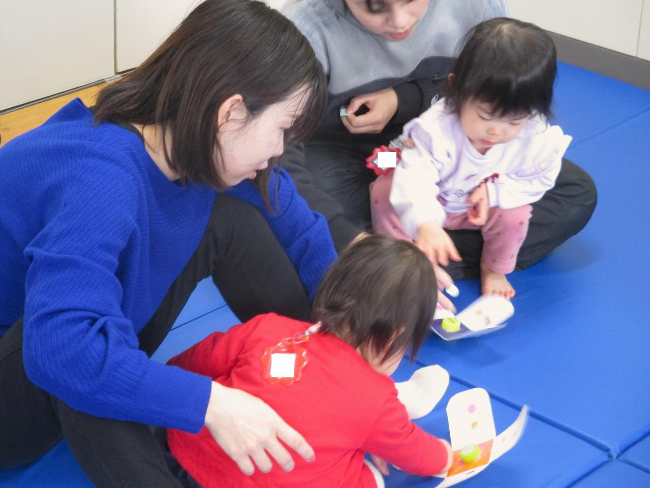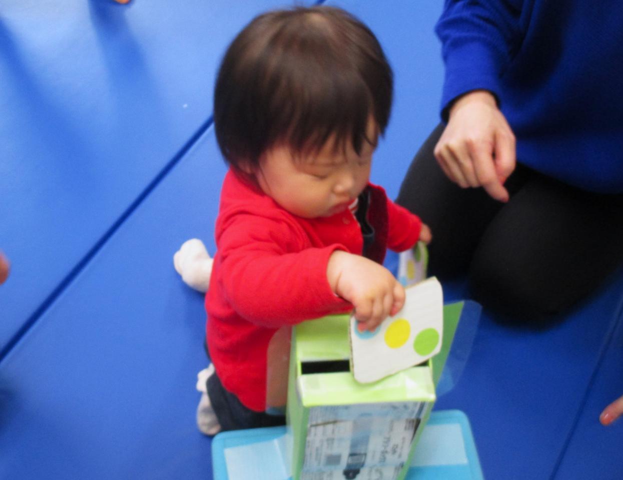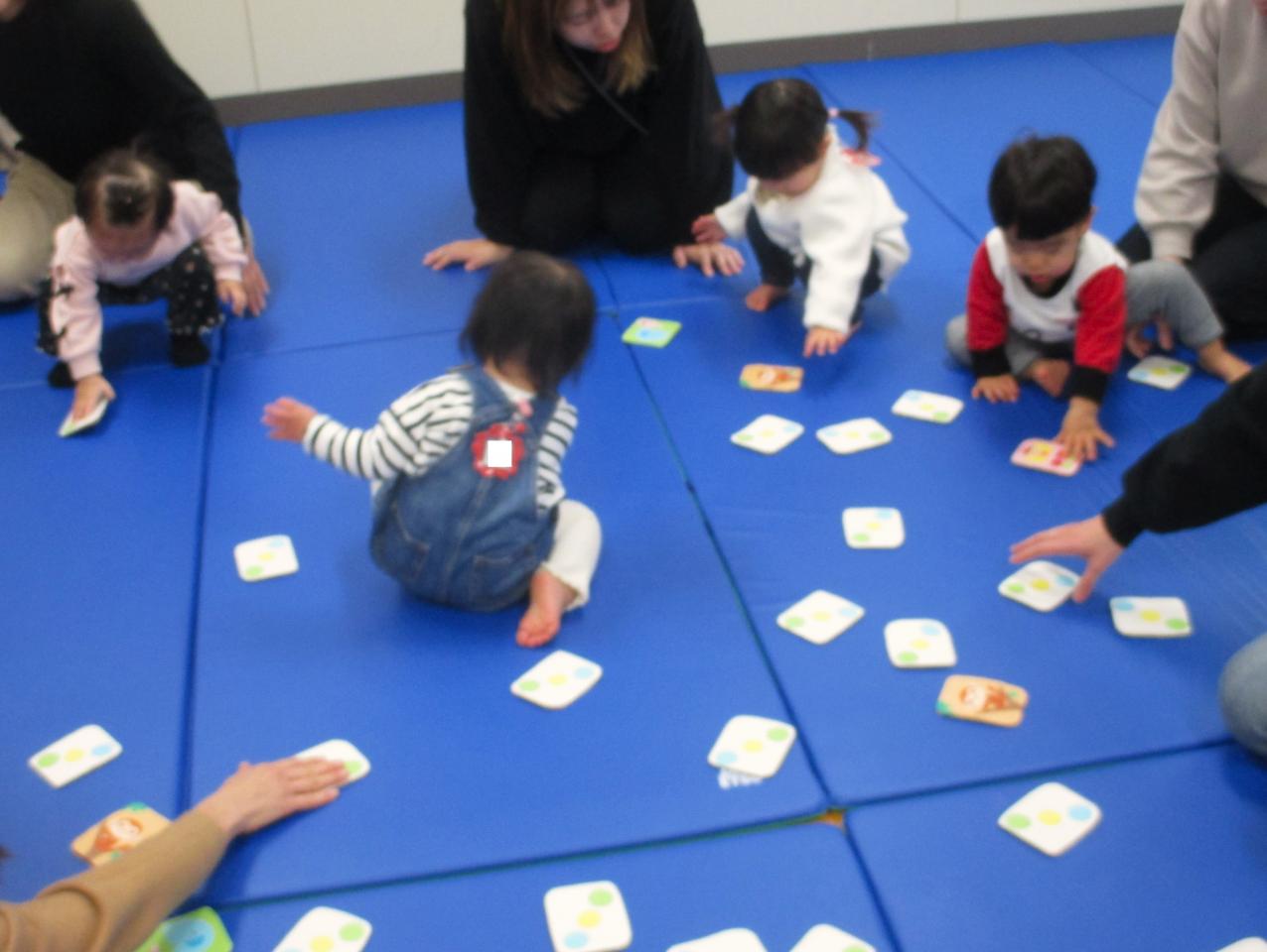 絵かるたでは、両手いっぱいカードを拾っては、同じ絵柄の箱に何度も入れて楽しんでくれていました♪