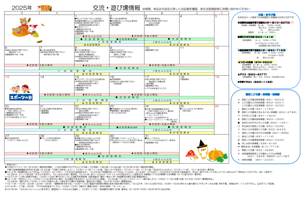 10月の交流遊び場情報