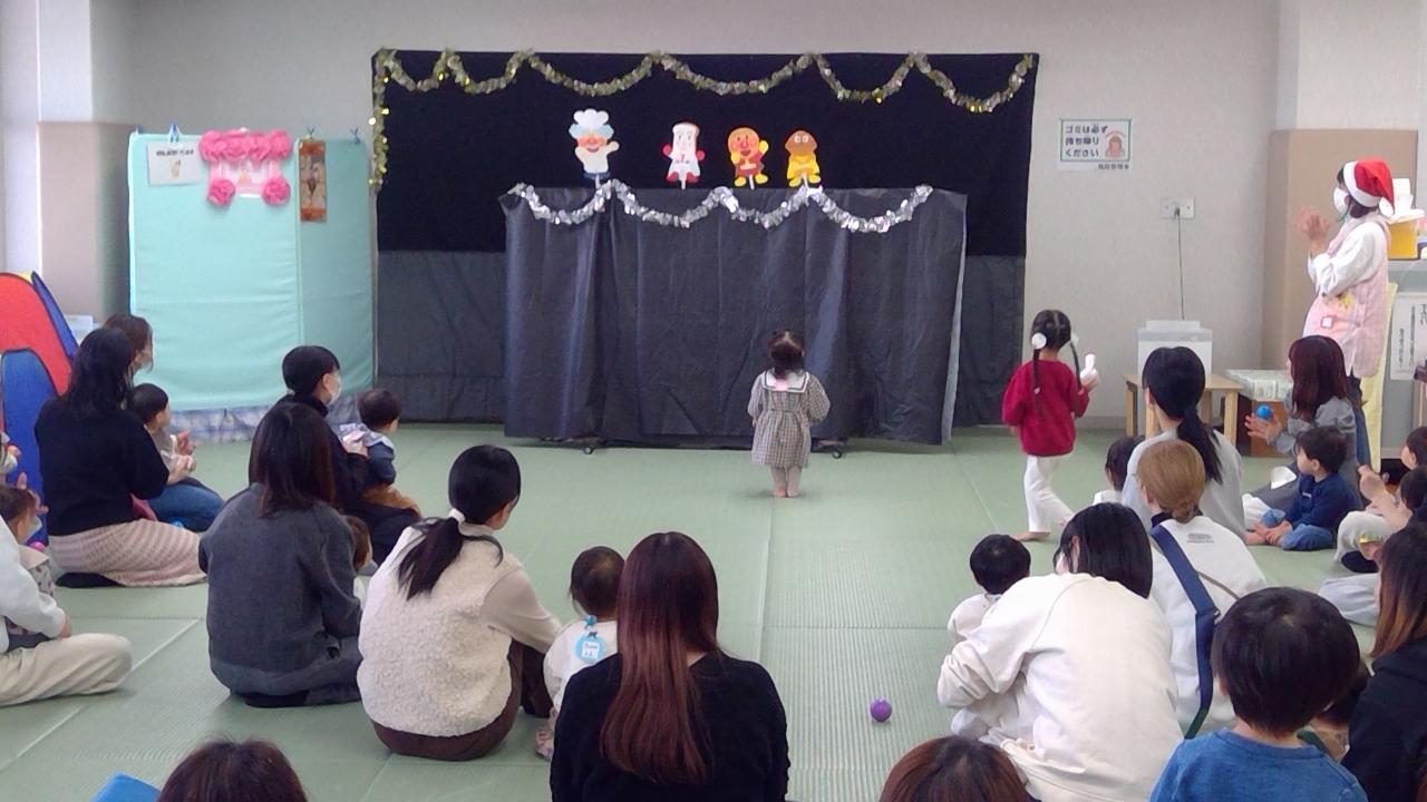 つどいの広場からみんなへのクリスマスプレゼントにアンパンマンのサンサン体操のペープサートをしました♪アンパンマンに出てくるお馴染みのキャラクターがたくさん出てきてみんなとても嬉しそうに見てくれていました(*^▽^*)